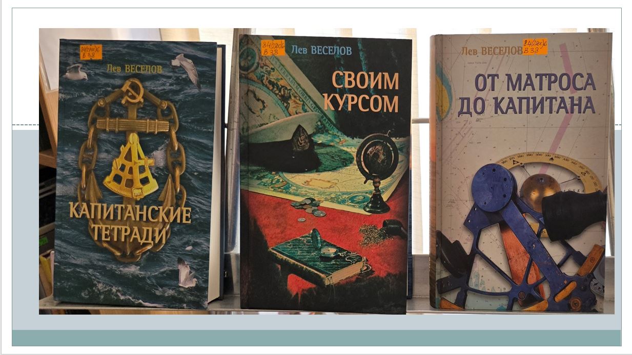 Три книги Льва Веселова рассказывают о пути героя на капитанский мостик. Издания имеют пометки владельца коллекции капитана Геннадия Васильевича Коломенского (советский и российский моряк, капитан-наставник барка «Крузенштерн» (1979—2014). Первая книга трилогии Льва Веселова о людях моря связанных с судьбой автора формировавших его личность.
